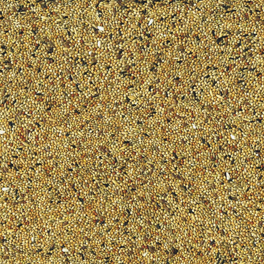 Millet rond jaune, millet rond blanc, avoine pelée, alpiste, millet rond rouge, graines de lin, cardy.