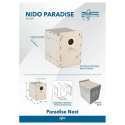 Nid entièrement en plastique pour perruches ondulées, inséparables ou agapornis. Compatible avec tous types de portes. Ce nid est facilement démontable et facile à nettoyer, le diamètre du trou est ajustable avec les accessoires fournis, ce nid possède des vnetilations sur le côté, avec porte étiquette sur l'arrière du nid, 19,5 x 25 x 27,5h cm.