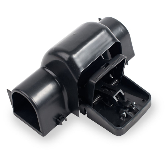 Piège à rat robuste dont l'accès est protégé par un tunnel. La boite de sécurité en plastique autour du piège permet de capturer les rats en protégeant les autres animaux. Il est idéal dans un poulailler, aux abords des volières, garage...