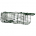 Ce piège en acier galvanisé vert est adapté à la prise des chats, renardeaux, ragondins, putois et fouines. Un simple appui sur la plaque débloque le verrouillage de la porte qui se referme. Ce piège se replie facilement pour le rangement.