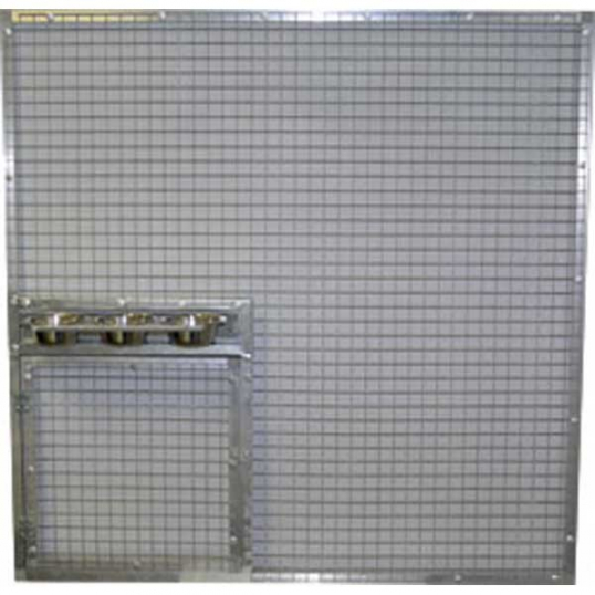 Panneau de volière tout alu avec porte : monté sur tube en aluminium de 20mm*20mm épaisseur 1,5mm. La maille du grillage 19 x 19 mm et le fil de 1,45 mm sont adaptés à la construction de volière intérieure ou extérieure pour perruches et perroquets. Plateau Pivotant 3 bols de diamètre 13. Finition de qualité.